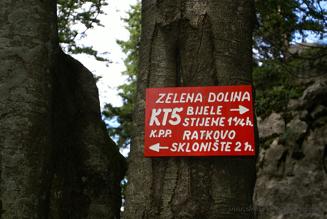 - after Ljuska, to descent to the road via Ačkova dolina (Ačkova valley) and through Klanac Kostura (Skeleton Gorge) to the forester road which leads toward the starting point