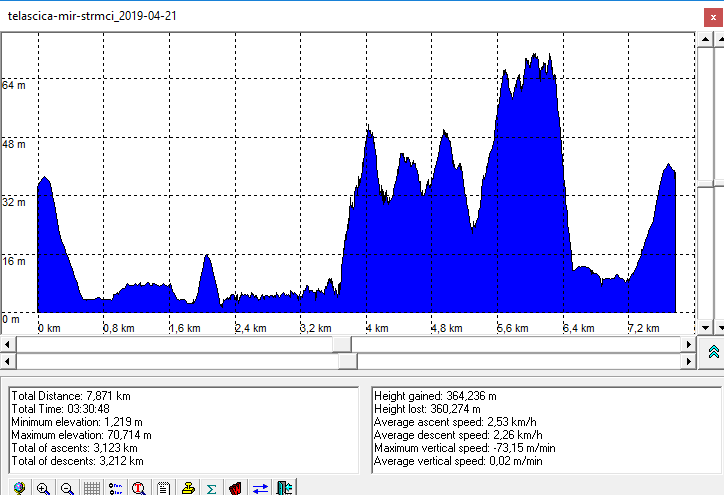 • Tip staze: Markirana staza po malo težem terenu (vidi visinski profil)