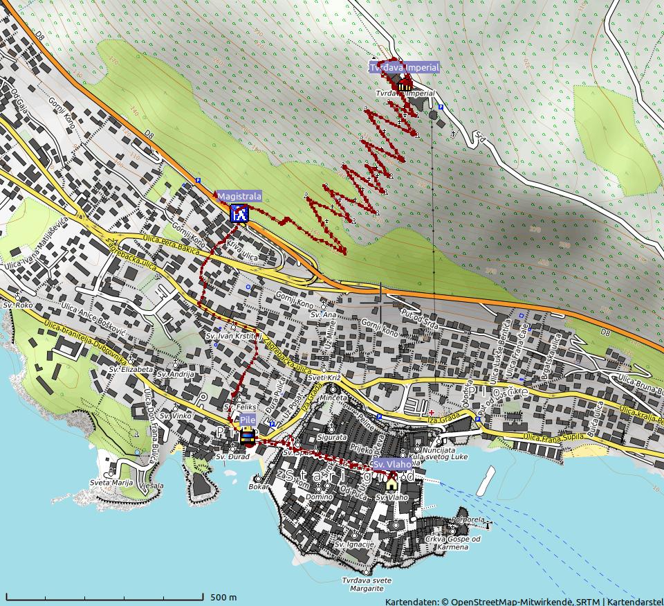 Ruta: magistrala -> Srđ -> magistrala -> Pile