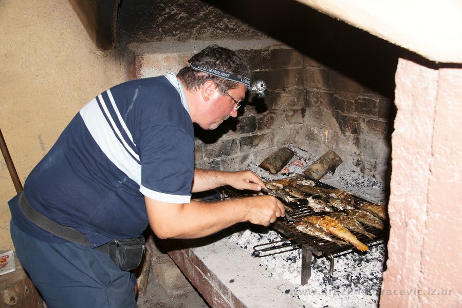 - Nakon ustaljenog jelovnika od ćevapa i čobanca s dosadašnjih Velebita, za promjenu pobrinuo se Nino sa svježom ribom s Visa koju je majstorski izgradelao. A drugi dan... za riblju večeru, veliku pastrvu, pobrinuo se izuzetno ljubazni domar Ante.